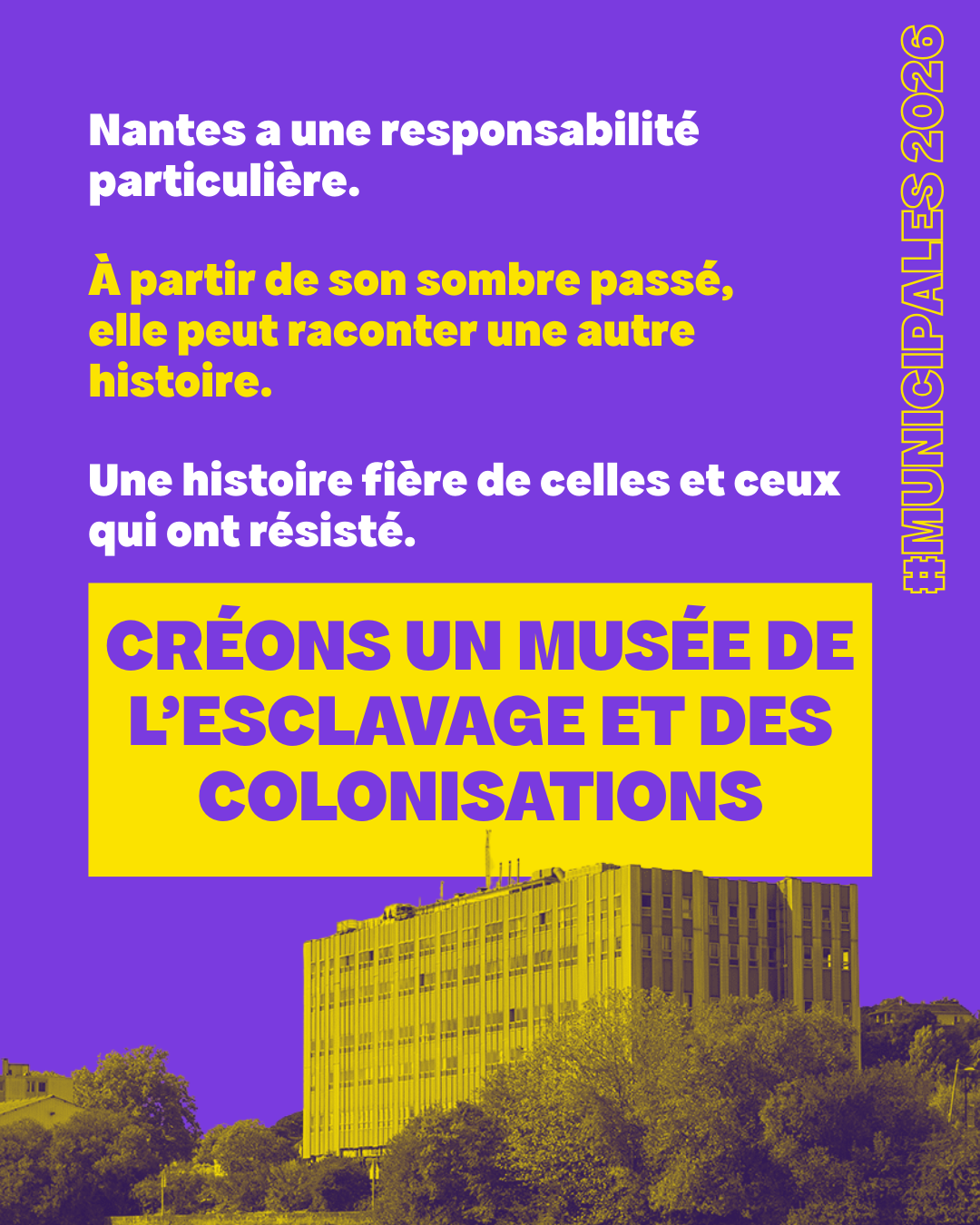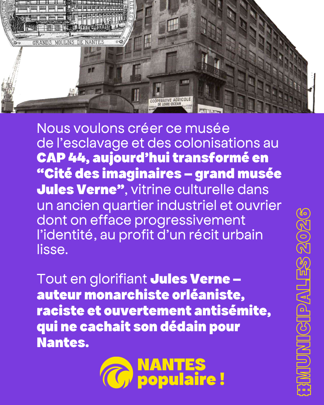 Nous voulons créer ce musée de l’esclavage et des colonisations au CAP 44, aujourd’hui transformé en “Cité des imaginaires – grand musée Jules Verne”, vitrine culturelle dans un ancien quartier industriel et ouvrier dont on efface progressivement l’identité, au profit d’un récit urbain lisse.